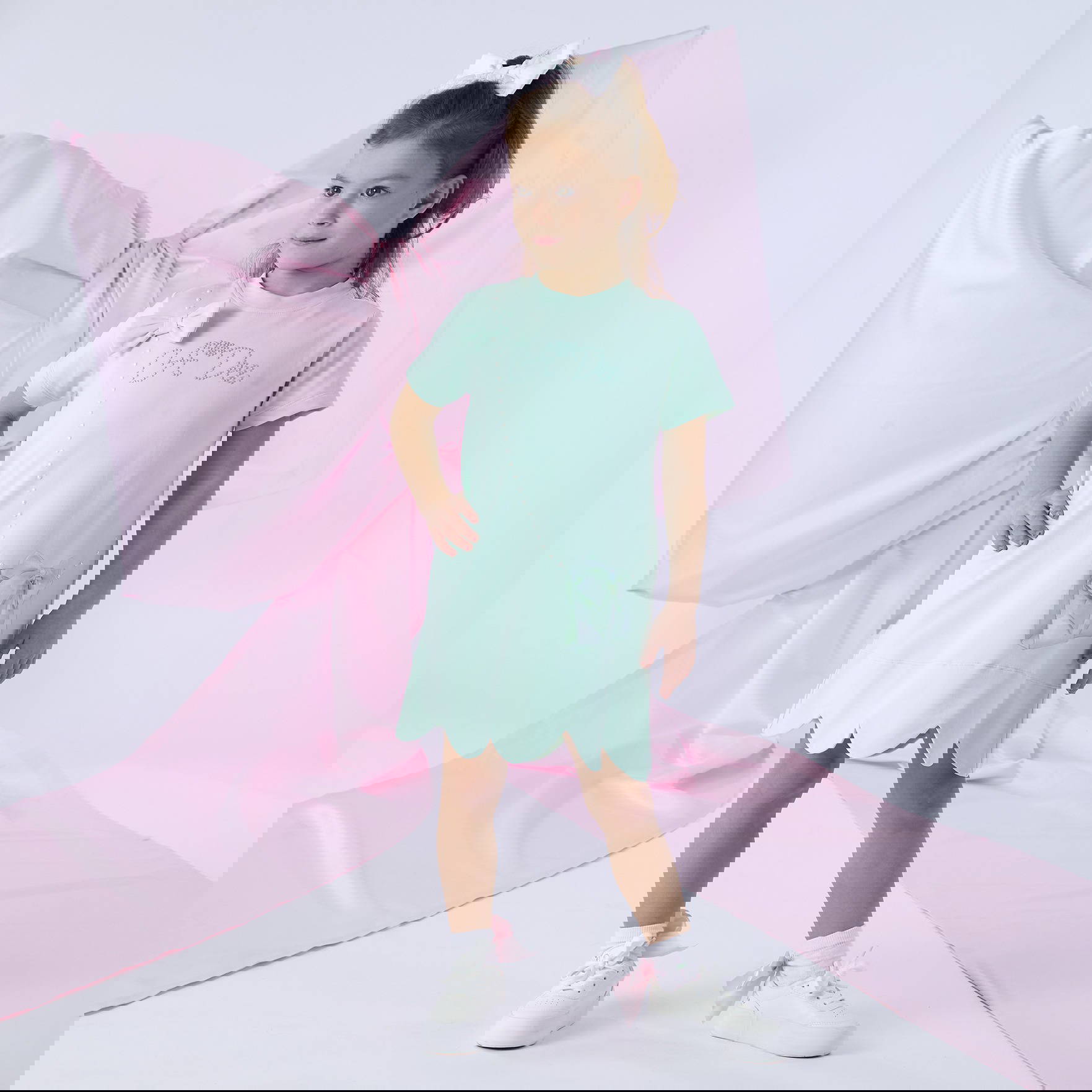 The Regina dress features a beautiful handbag artwork with diamante details and an applique bows. Finished with a pretty scalloped hem.