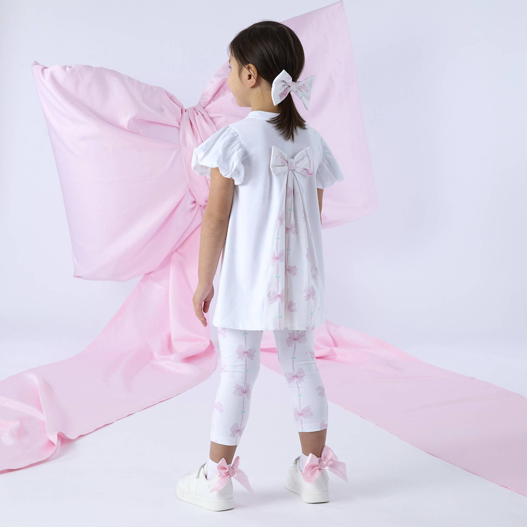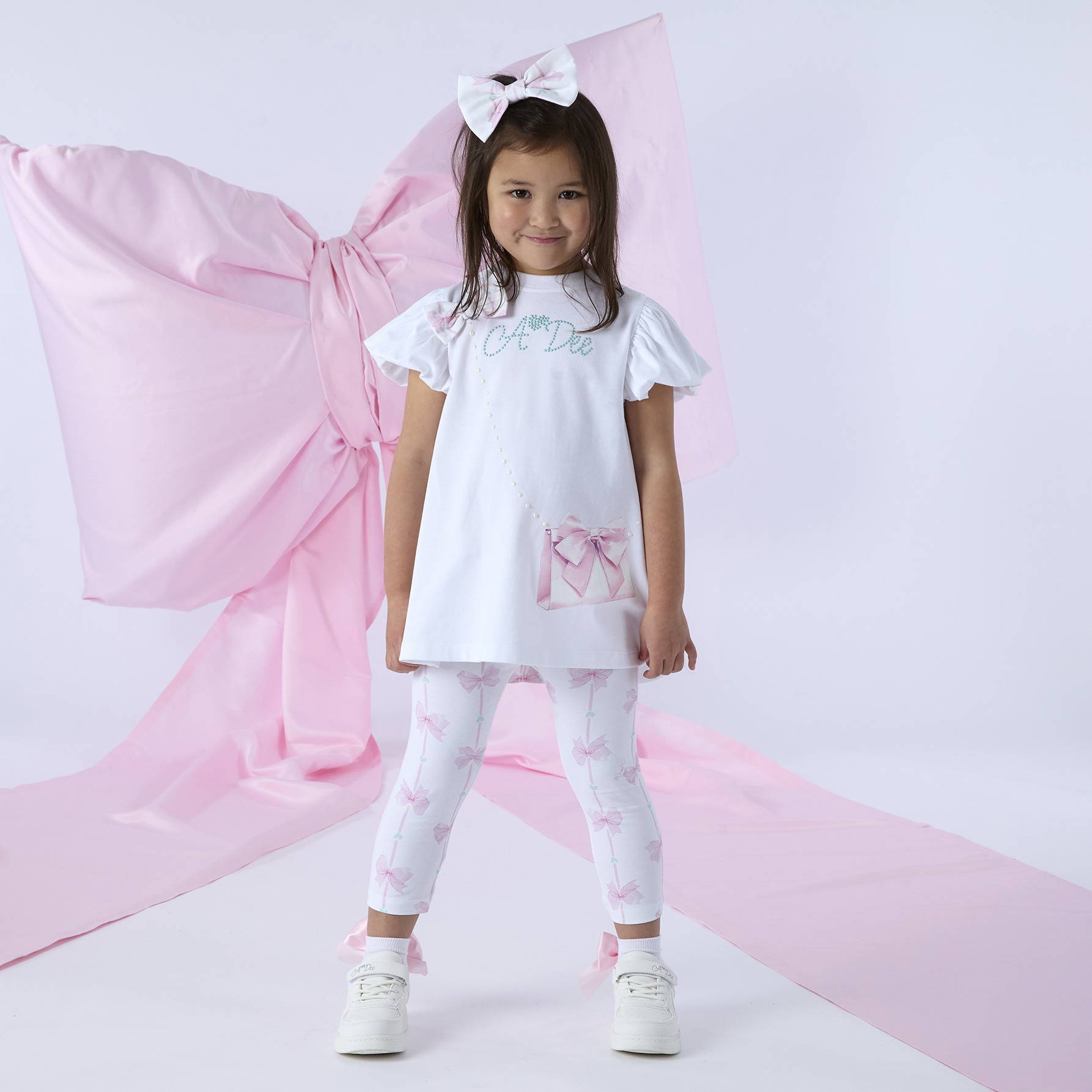 The Rita legging set is perfect for special occassions. The top features a handbag design with diamante details and beautiful bow print on back insert. The leggings are made in the matching bow print.