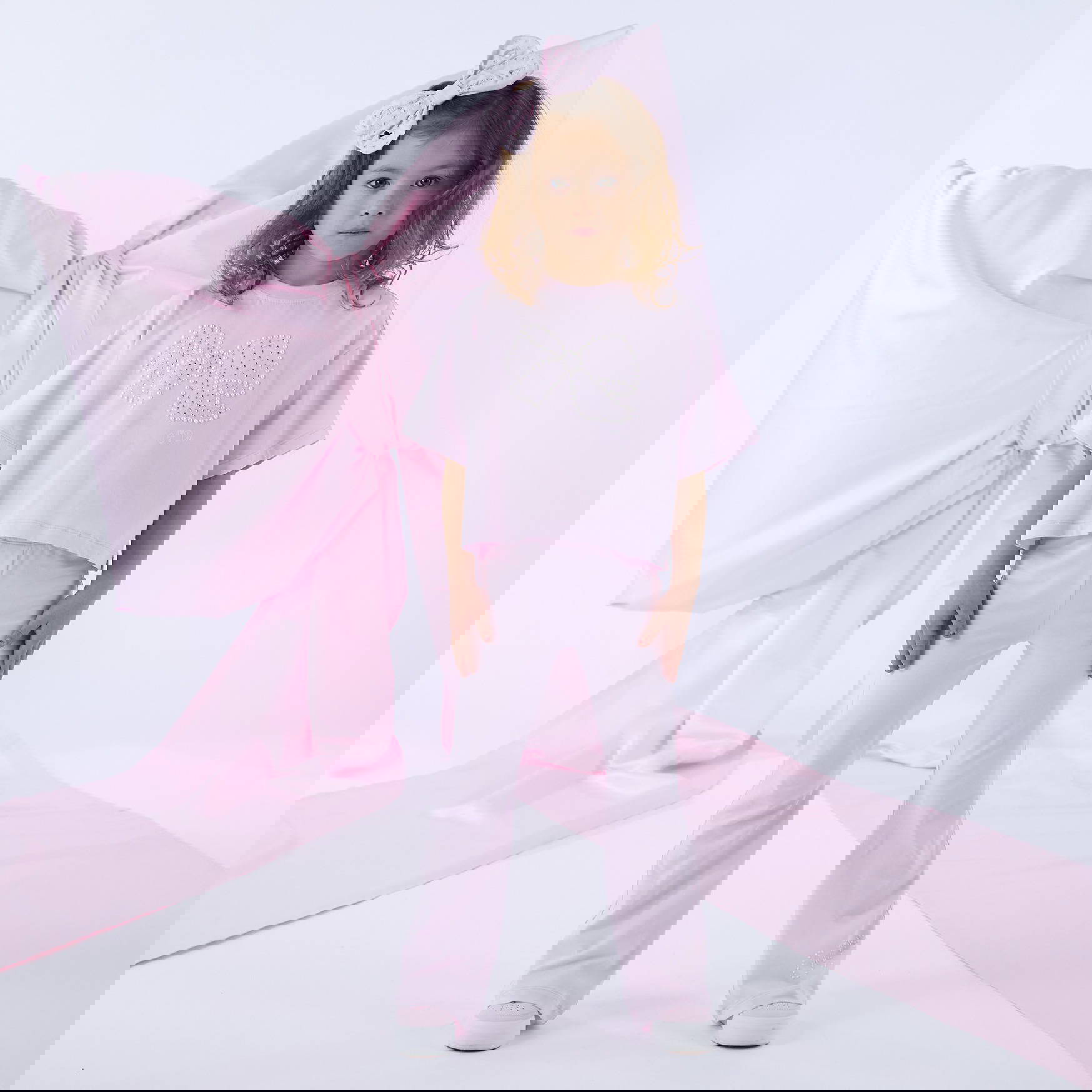 Keep it simple and stylish in the Samantha flare legging set. Featuring a short sleeve top with a pearl bow artwork and matching pink flared trousers.